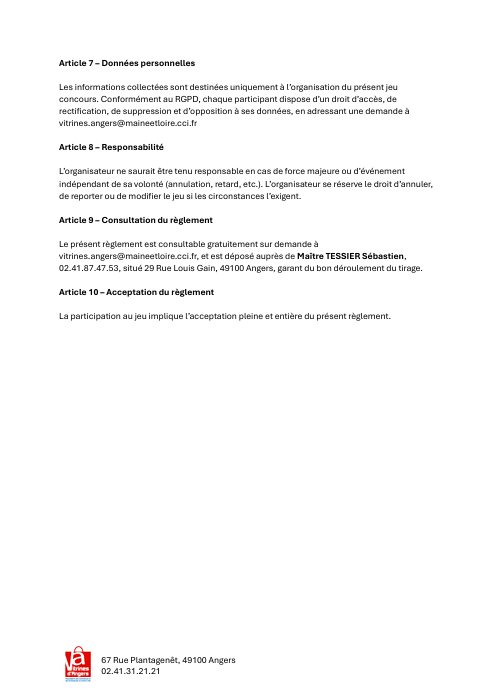 *1200€ de chèques cadeaux Vitrines d'Angers.