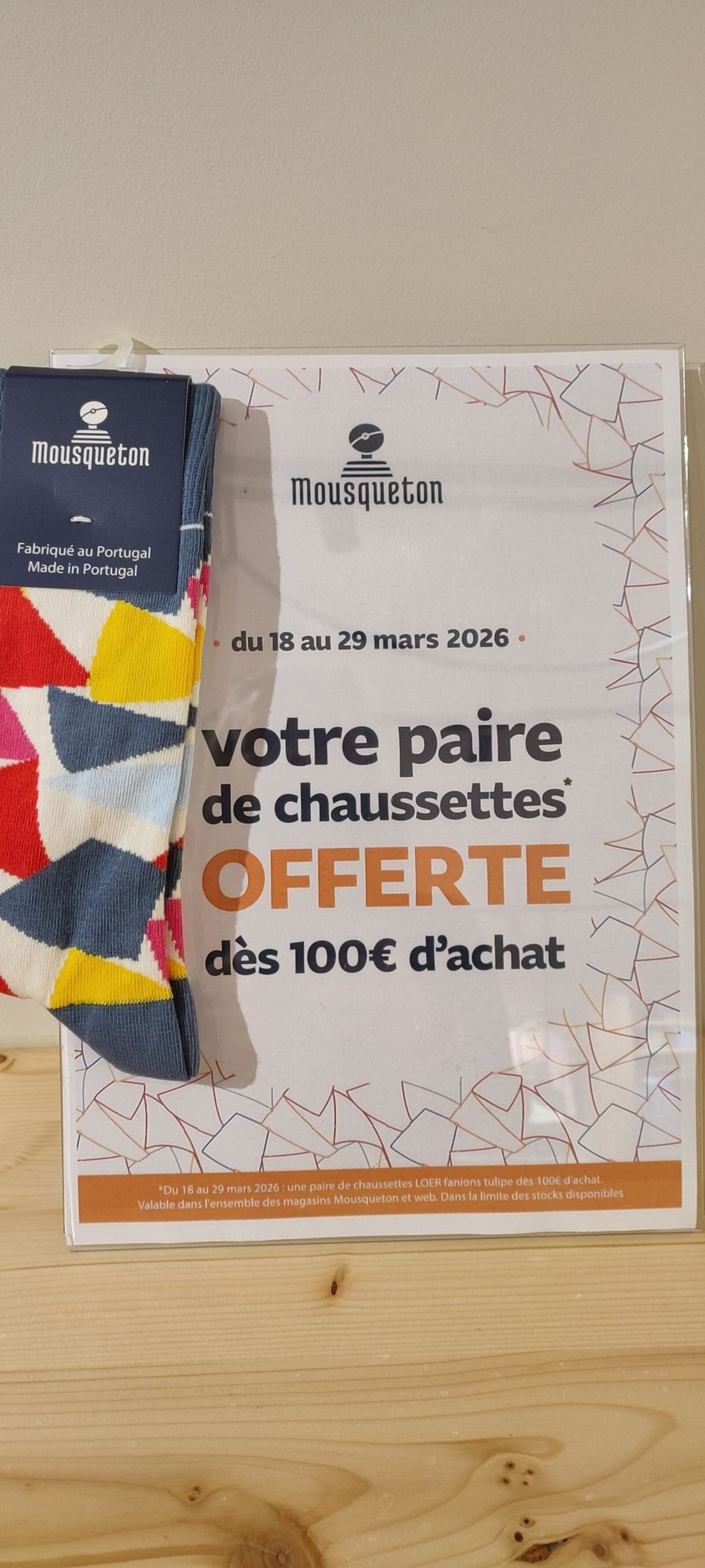 Venez profitez d une paire de chaussettes offerte dés 100 € d achat dans votre boutique Mousqueton au 7 rue st Aubin